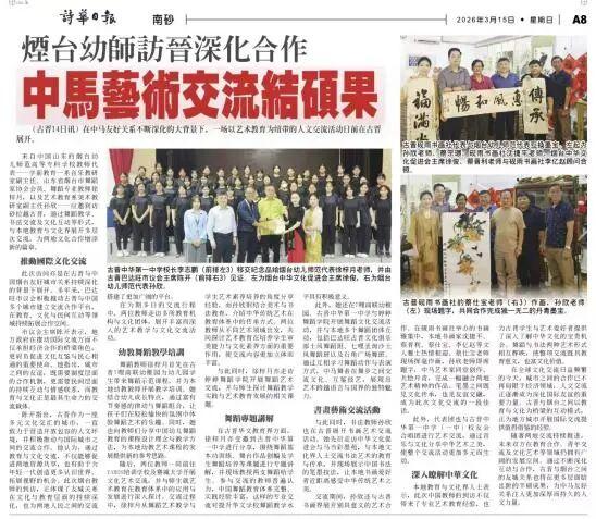 近日,烟台幼儿师范高等专科学校学前教育一系舞蹈教师徐梓月、艺术教育系书法教师孙欣联袂赴马来西亚,以班墨学院海外建设为契机,开展“舞蹈+书法”双艺融合文化交流活动。两场艺术盛宴跨越山海、双向奔赴,不仅点燃当地师生与艺术爱好者的热情,更收获马来西亚本地媒体、社交平台广泛关注与高度赞誉,让中华优秀传统文化与中国职教风采在异国他乡精彩绽放!