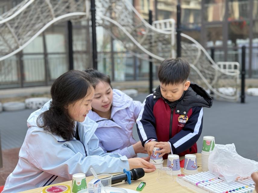 现场陈列的纸杯火箭小巧可爱,承载着孩子们的航天憧憬。在师范生的引导下,孩子们亲手按压装置、释放动力,看着纸杯火箭直冲云霄,在欢声笑语中感受航天探索的乐趣。