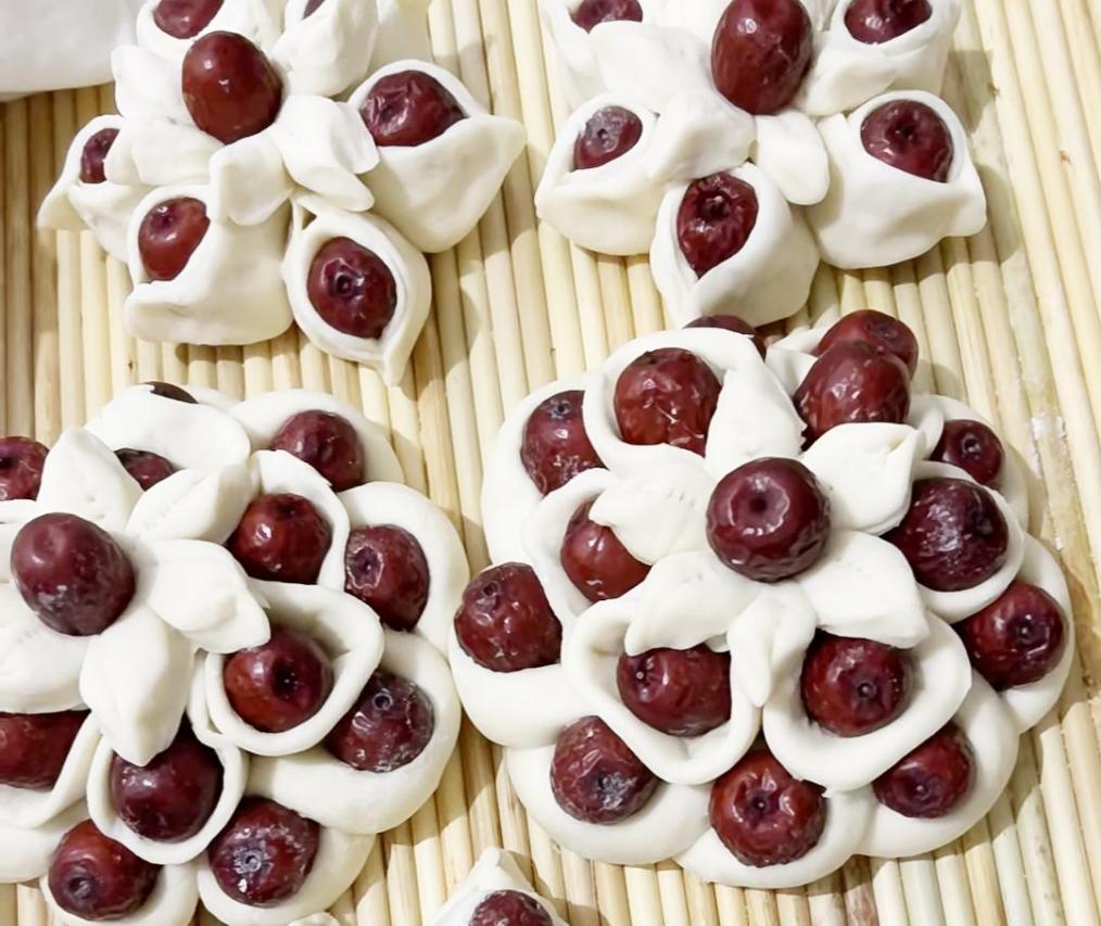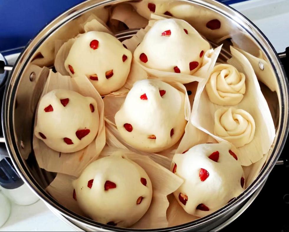 与豆面灯碗相映成趣的,是精致喜庆的花饽饽。雪白的面团经发酵、塑形、点缀,化作龙凤呈祥、花开富贵、福虎瑞兽等生动造型,色彩柔和,栩栩如生。蒸笼掀开的瞬间,热气氤氲,麦香与枣香扑面而来。花饽饽既是餐桌上的美味,也是节日里的吉祥摆件,承载着人们对团圆美满、幸福安康的美好祝福,彰显着胶东民间艺术的独特魅力。