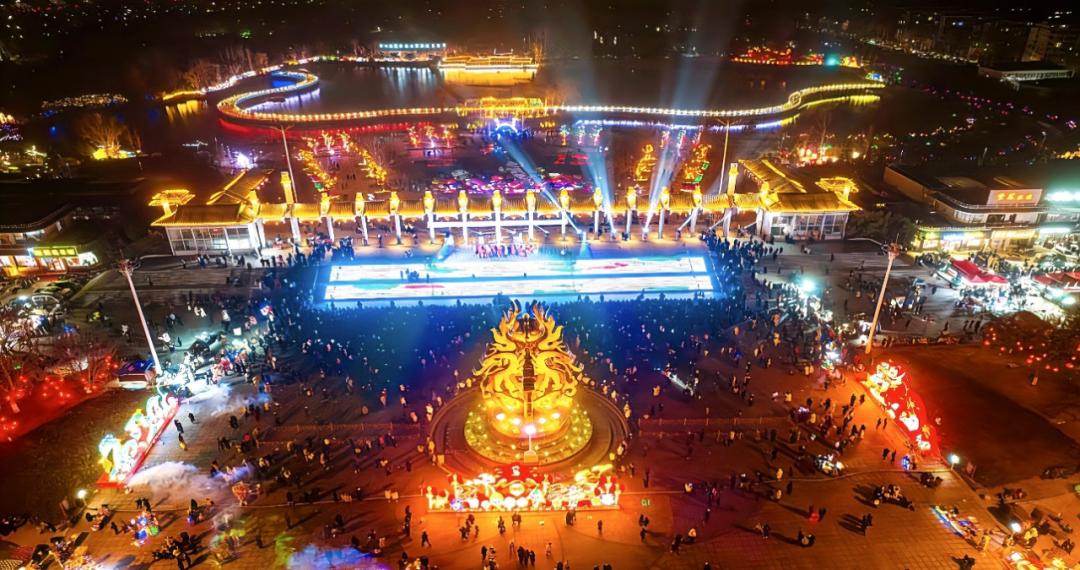 夜幕降临,五龙广场便成为元宵最热闹的所在。各式花灯流光溢彩,璀璨夺目,将夜色装点得如梦似幻。高高悬挂的红灯笼随风轻摆,光影交错,游人络绎不绝,笑语盈盈。赏灯、猜谜、观景,处处人声鼎沸,喜气洋洋。传统民俗与现代氛围在此交融,老人们驻足赏灯,回味旧日年味;孩子们嬉笑奔跑,感受节日欢乐。广场中央灯火辉煌,与远处的街巷微光遥相呼应,书写着梨乡元宵最鲜活生动的热闹。