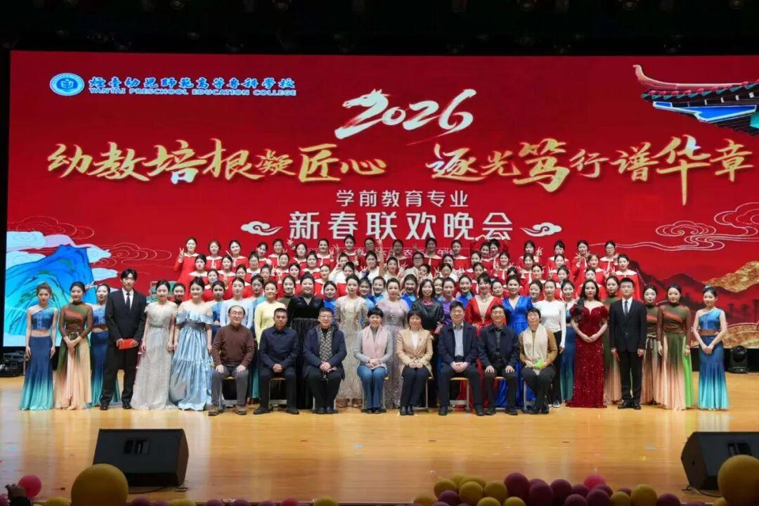 金马奔腾开新局,幼教逐梦启华章。值此辞旧迎新、万象更新的吉庆时节,烟台幼儿师范高等专科学校学前教育专业 “幼教培根凝匠心 逐光笃行谱华章” 2026年新春联欢晚会盛大举行。师生欢聚一堂,以艺术为桥,致敬教育初心;以深情为翼,奔赴崭新征程,用一场意蕴悠长的文化盛宴,奏响了新春的奋进之歌,彰显了幼教事业的蓬勃生机。