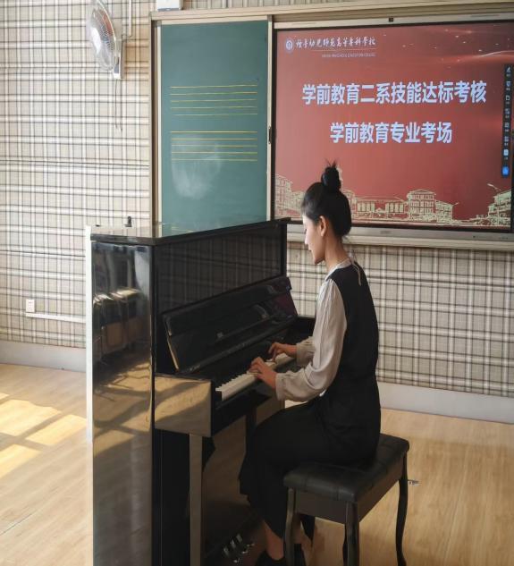 幼儿歌曲弹唱现场,琴声悠扬,歌声婉转。同学们端坐琴前,指尖灵动跳跃,熟练弹奏着一首首幼儿耳熟能详的经典曲目,节奏明快、音准精准,演唱时语气柔和、充满童趣。弹唱结合间,既展现了扎实的钢琴演奏基础,也传递出对幼儿歌曲的深刻理解,每一个音符都承载着对幼儿教育的热忱,每一段旋律都彰显着专业素养。