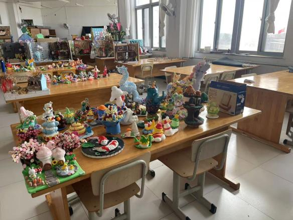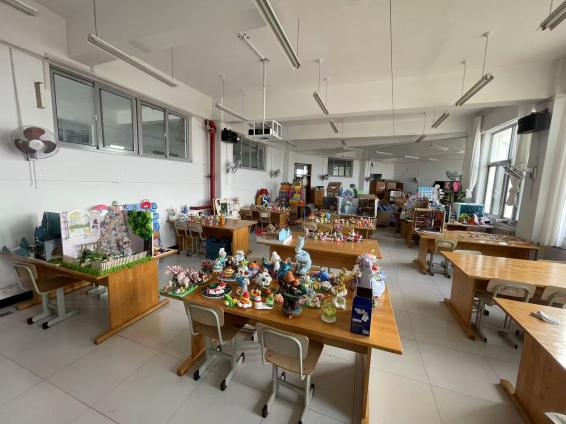 两间实训室规格统一,每间面积约150平方米,空间宽敞规整,能够充分满足班级集中实训与分组实操的需求。室内均配备多张2.4米长大型工作台,操作台宽敞稳固,适合开展学前手工制作、教玩具设计、幼儿活动模拟等各类实操项目,每间实训室可同时容纳50名学生开展上课与实践操作,保障班级实训教学有序开展。
