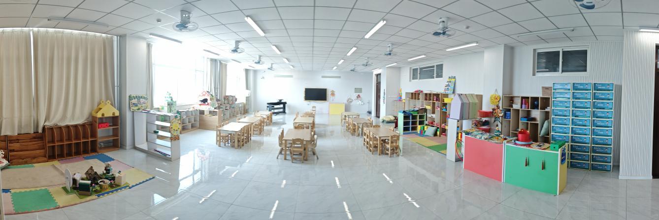 幼儿园仿真实训室是学前教育专业保教实践、教学演练、技能竞赛的核心场所。本实训室还原幼儿园真实教育环境,整体布局科学规范,中间为集体教学活动区,四周设置益智区、建构区、阅读区等完整功能区角,以及蒙氏教学区域。