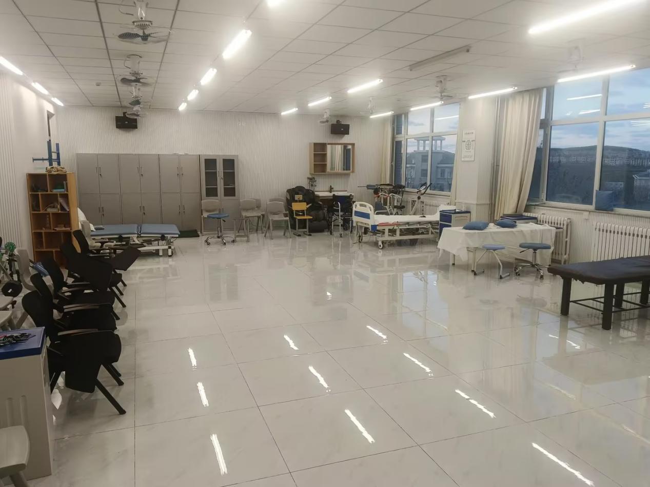 四楼为标准化养老中心,秉持“智慧化、标准化、人性化”理念,打造覆盖养老服务全场景的实训空间,设有五大核心实训室,分别是智慧康养居家社区实训室(生活照护实训室)、养老机构实训室(健康照护实训室)、康复训练实训室、家庭护理实训室、养老护理实训室;各实训室配备智能穿戴设备、远程健康监测系统等智慧设施,模拟真实养老场景,培养学生掌握智慧养老设备操作与标准化养老照护技能,契合现代养老产业发展需求。