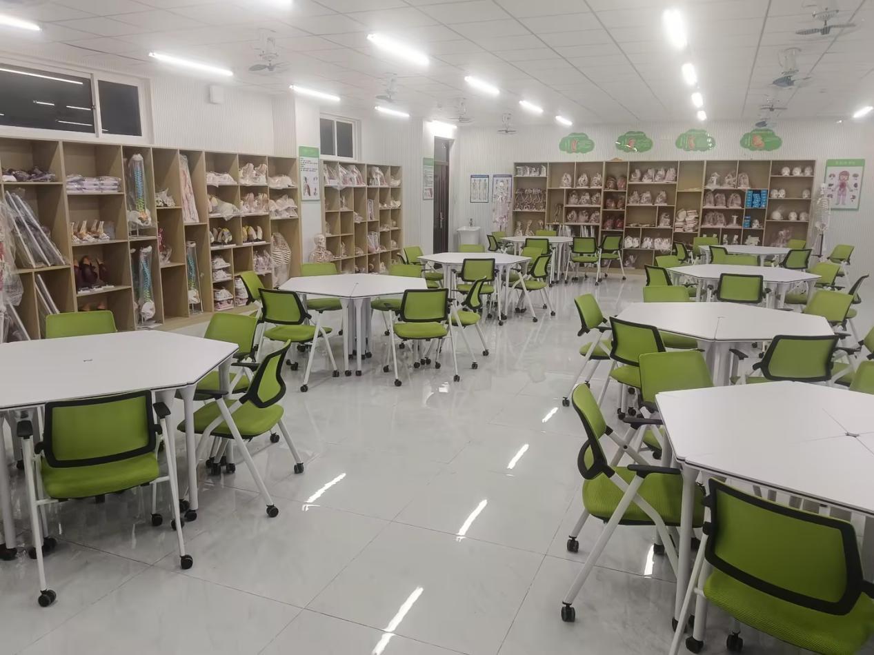 三楼为乐龄活动中心,以“乐享生活、康乐相伴”为定位,打造集休闲娱乐、文化体验、艺术疗愈、认知促进于一体的多功能空间,设有四大实训室及功能区,分别是乐享康护中心(含智慧康养机构接待区、乐龄阅读区等)、老年人能力评估实训室、美工实训室、传统文化与生活体验馆(含陶艺区、编织区等六大功能区域);这里既是老年群体精神文化生活的服务阵地,也是养老服务专业学生开展实践实训的重要平台,推动老年康养服务专业化、多元化发展。