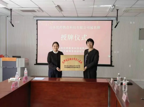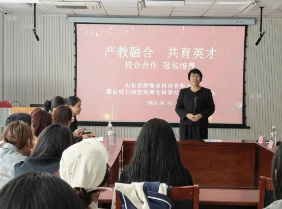 为深入推进人才培养模式改革,搭建学生实习就业精准对接平台,4月15日,烟台幼儿师范高等专科学校学前教育一系与山东优师教育科技有限公司联合举办“产教融合 共育英才”优师冠名班2025届签约授牌暨开班仪式。山东优师教育科技有限公司教学总监常泽兰、运营副经理赵顺华,学前教育一系副书记、副主任田海杰,教学管理科副科长路颜宁及38名冠名班学生出席本次活动。